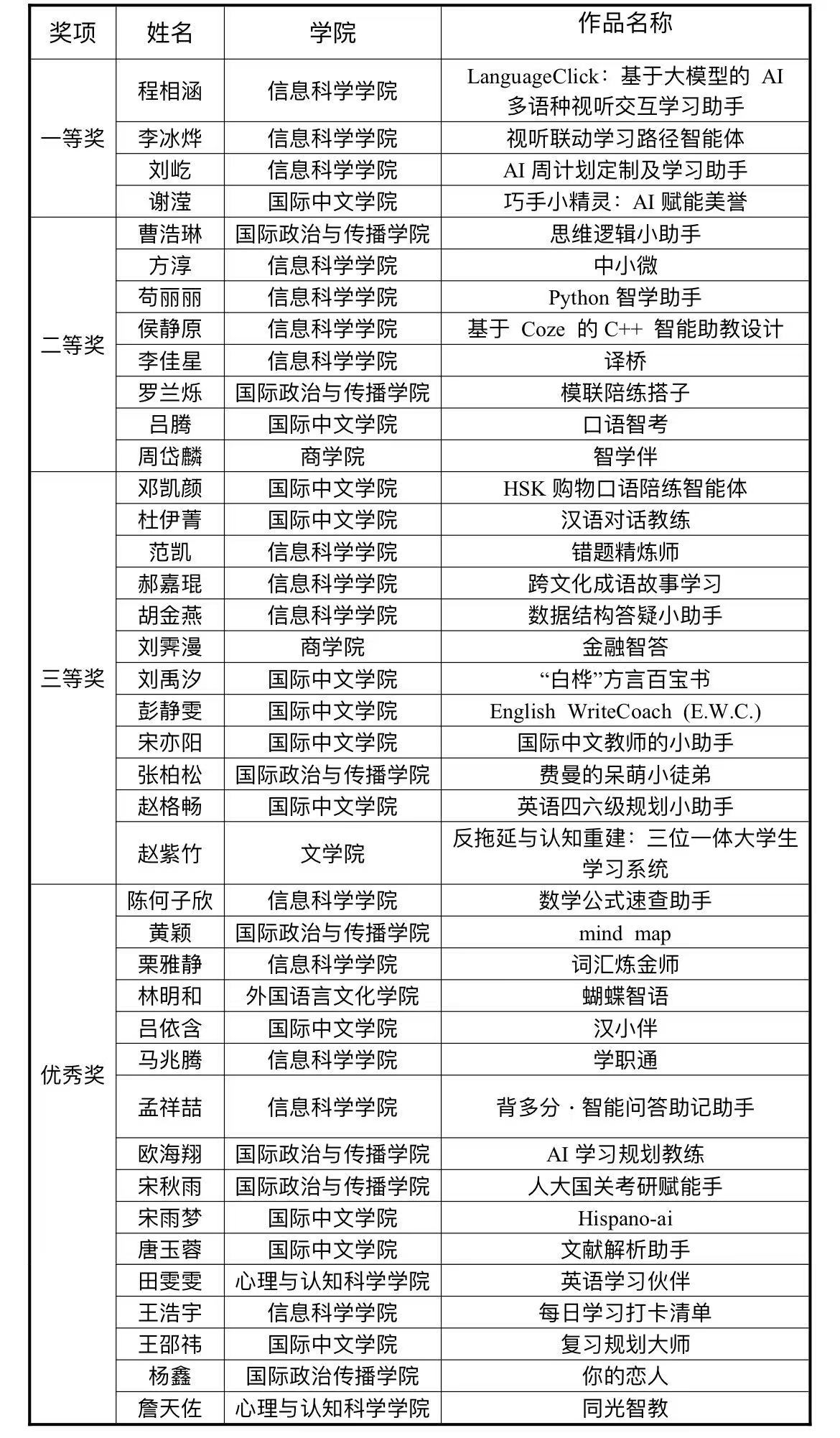 学生组获奖名单(按姓氏拼音排序)